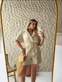 Conjunto Blusa e Short: estilo contemporâneo com caimento suave e cintura marcada pelo cinto elegante. Blusa de lapelas com manga dobrada e fechamento ajustável cria silhueta feminina; Short reto, com comprimento equilibrado, compõe um look moderno para qualquer ocasião. Tecido leve e macio oferece conforto duradouro e facilidade na hora de combinar. Ideal para passeios, encontros diurnos e viagens, com vibe casual-chic.