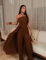 Conjunto Nina com caimento suave e pantalona fluida. O drapeado assimétrico confere movimento e sofisticação, sem esforço. Tecido macio e leve, conforto o dia todo, ideal para festas, jantares e passeios elegantes. Peça única que harmoniza estilo moderno com praticidade — combine com sandálias ou salto para um visual minimalista e chic.